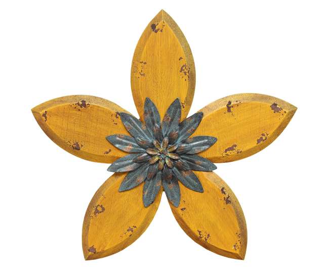 Stratton Home Decor Wood Metal Hand Painted Antique Flower Wall